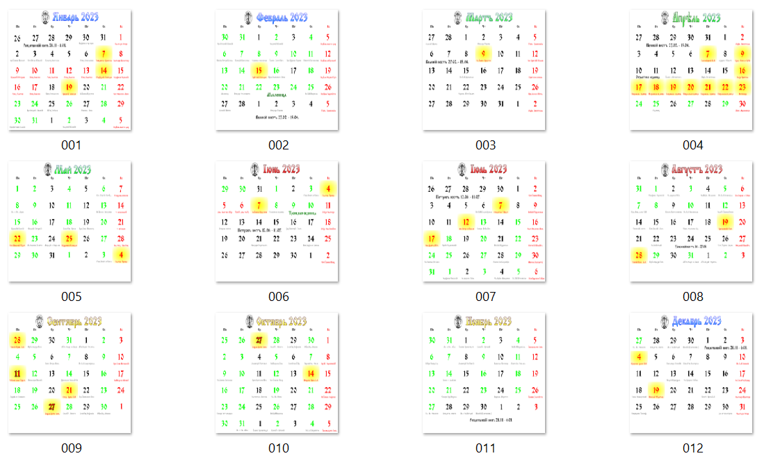 Формат JPG высокого разрешения, 12 листов по месяцу.
