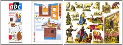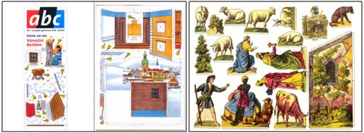 Два бумажных макета рождественских вертепов в западном духе – первый вертеп сделан как объёмная картина, второй – как диорама с отдельными фигурками.