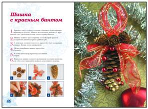 Отличная книга с довольно простыми, но при этом нарядными и эффектными проектами самодельных ёлочных игрушек. Каждая поделка сопровождается подробными фотографиями процесса изготовления и результата.