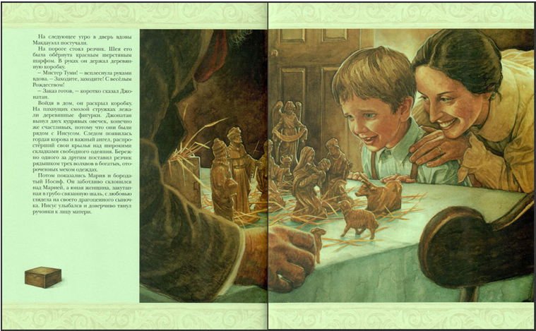 Замечательная рождественская история про угрюмого резчика по дереву, и про то, как его жизнь озарило рождественское чудо. Книга украшена шикарными иллюстрациями.