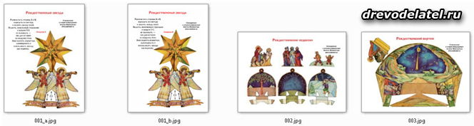 Рождественский набор состоит из рождественской звезды с ангелами, вертепа и трёх подвесок-украшений.