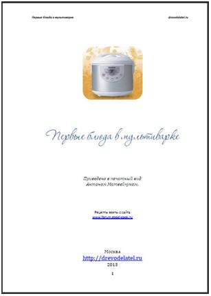 Книга с рецептами первых блюд для мультиварки с фотографиями как процесса готовки, так и результата.