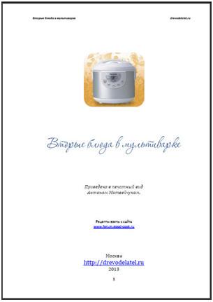 Книга с рецептами вторых блюд для мультиварки с фотографиями как процесса готовки, так и результата.