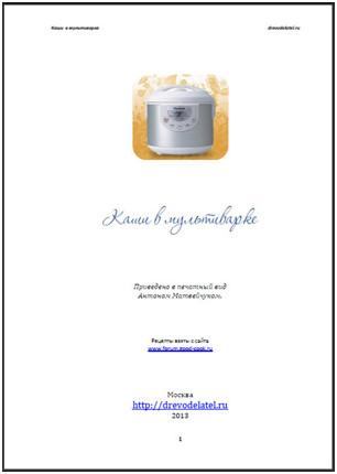 Книга с рецептами каш для мультиварки с фотографиями как процесса готовки, так и результата.