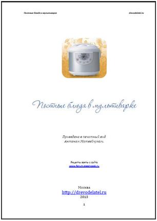 Книга с рецептами постных блюд для мультиварки с фотографиями как процесса готовки, так и результата.